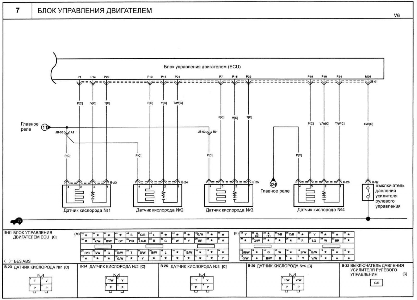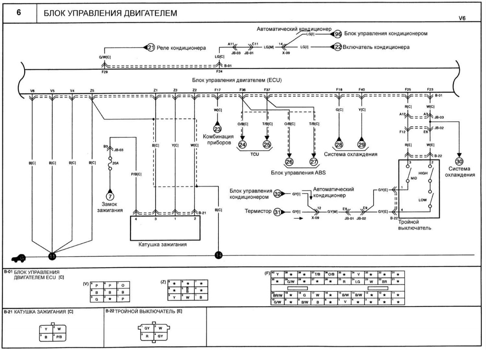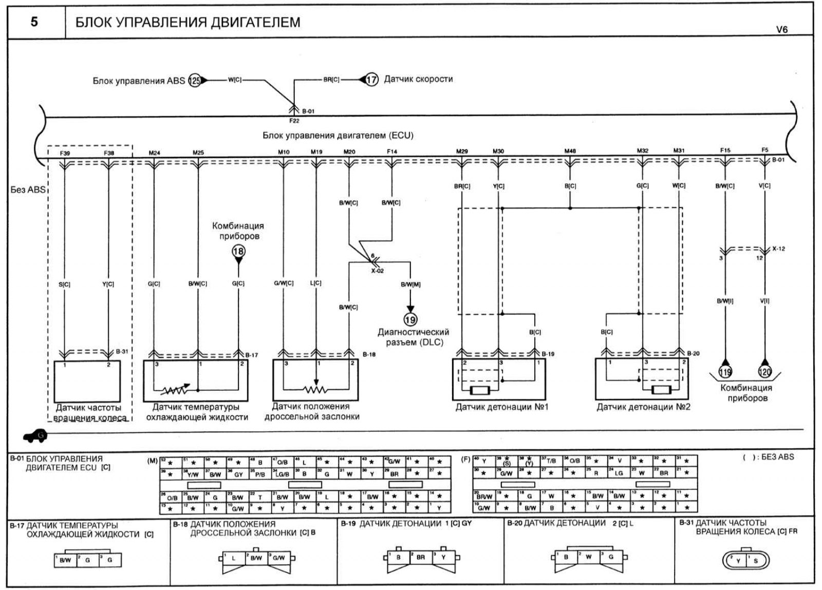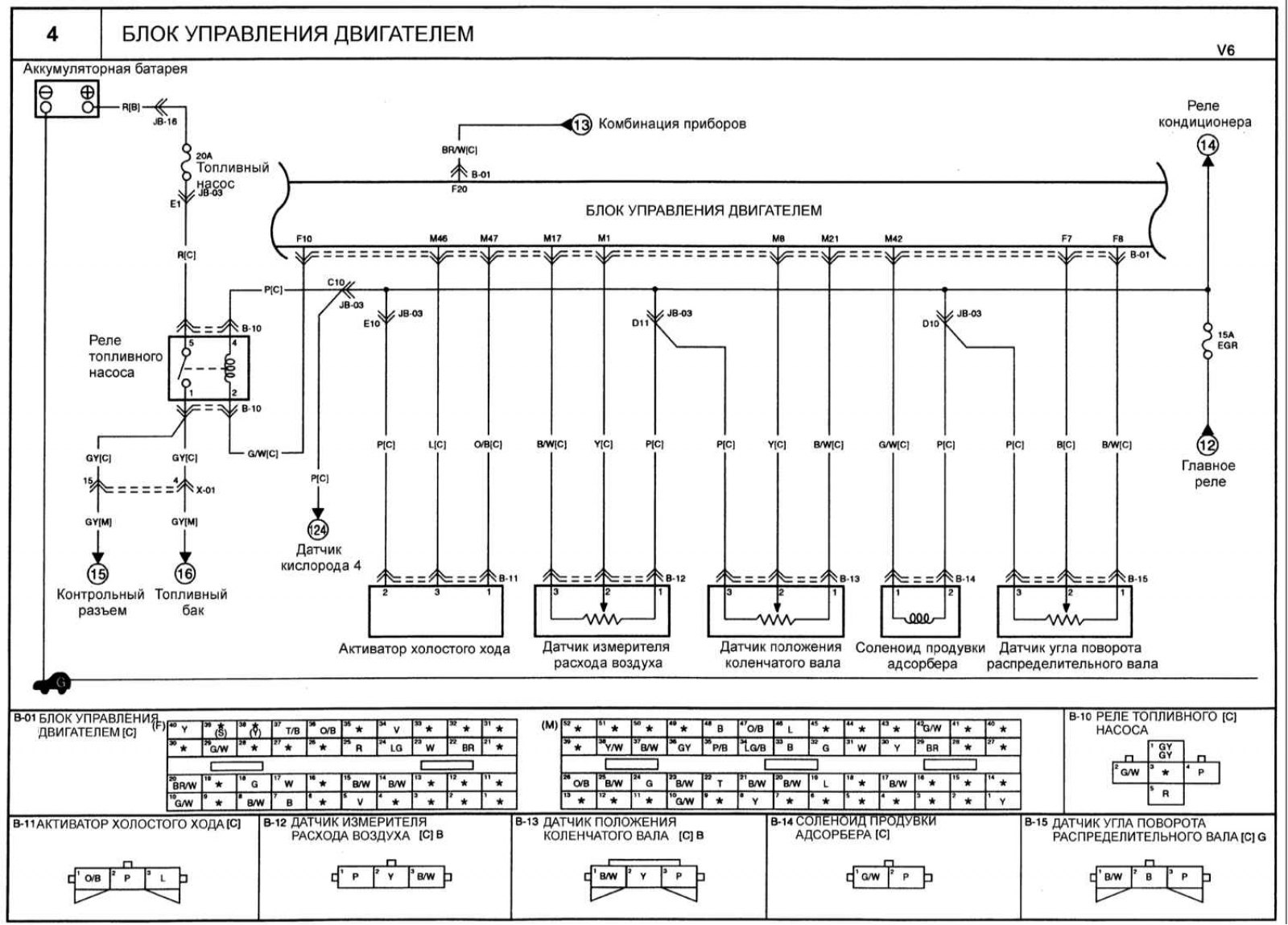 Киа Оптима 1 (2000-2005): Электросхема блока управления двигателем