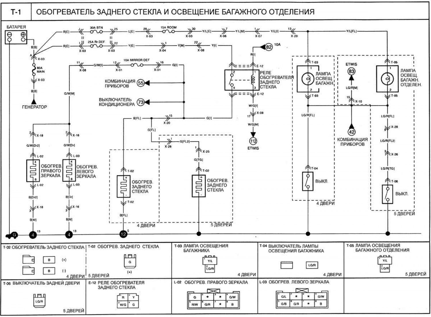 Электросхема обогревателя заднего стекла и освещения багажного отделения