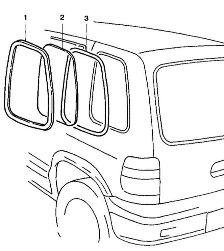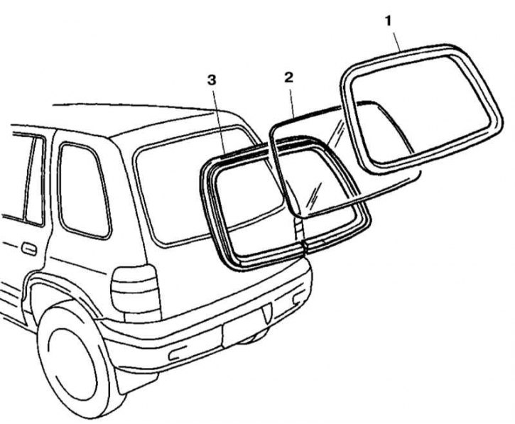 1 - Молдинг; 2 - Стекло; 3 - Уплотнитель