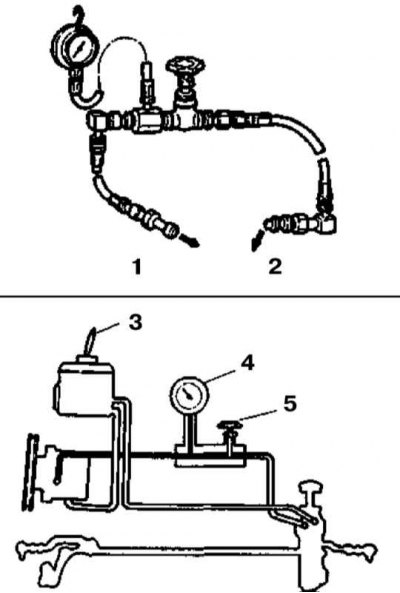 1. Отсоедините напорную линию гидравлического тракта от картера рулевого механизма и подключите к ней измерительный набор, - вентиль из набора должен подключаться на стороне рулевого механизма. Штуцерные соединения следует затягивать с усилием 31÷47 Нм.