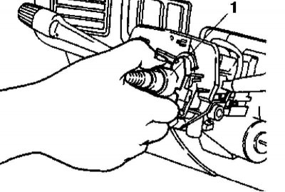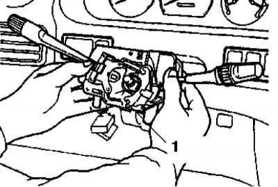 9. Рассоедините четыре контактных разъема и снимите сборку комбинированных переключателей (1) с рулевой колонки.