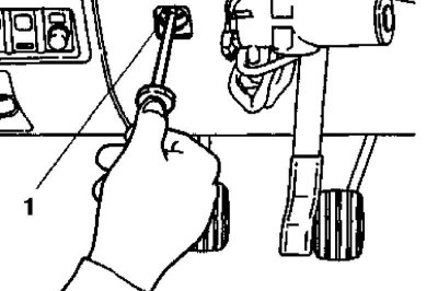 10. Выверните четыре крепежных винта (1) и снимите нижнюю секцию отделки панели приборов.