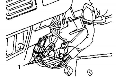 11. Рассоедините четыре разъема (1) электропроводки контактной группы выключателя зажигания.