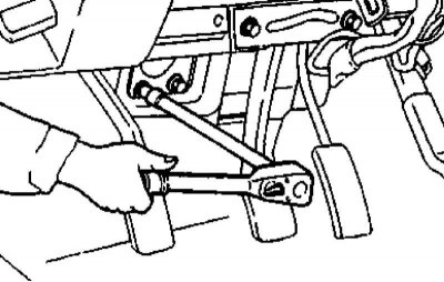 13. Отдайте четыре болта/гайки крепления нижнего опорного кронштейна рулевой колонки.