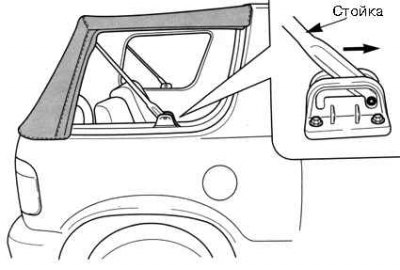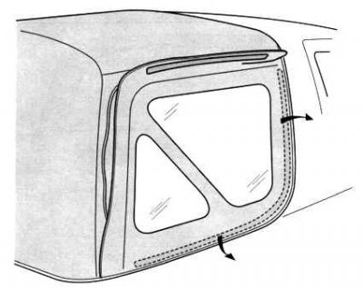 Примечание. Не следует протирать сухие или замерзшие стекла, а также складывать или скручивать снятые оконные части брезентовой крыши.