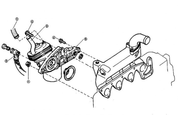 4. Установка производится в обратном порядке. Не забудьте заменить уплотнительные кольца, проследите за правильностью совмещения отверстий теплообменника с выступами на корпусе фильтра. Помните о необходимости соблюдения требований Спецификаций Главы Двигатель к усилиям затягивания резьбового крепежа.