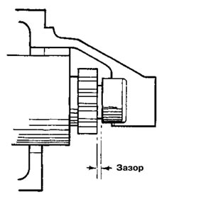 Рабочий зазор шестерни стартера (бензиновые модели)