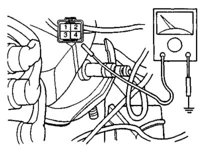 2. Подключите вольтметр к массе и клемме № 4 (черный провод) разъема проверяемого лямбда-зонда.