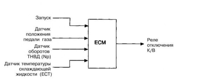 1. Посредством данного реле ECM обеспечивает принудительное отключение муфты сцепления компрессора К/В с целью поддержания стабильности оборотов холостого хода при следующих условиях: