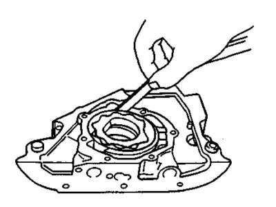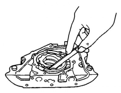 4. Извлеките сальник (5), - сальник подлежит замене в обязательном порядке (см. Раздел Замена сальников коленчатого вала).