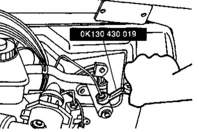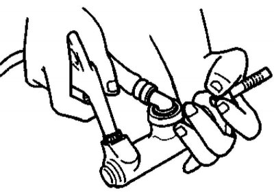 1. Откачайте гидравлическую жидкость из резервуара ГТЦ (альтернативно резервуар может быть заглушен путем подкладывания под крышку полиэтиленовой пленки). При помощи специального накидного ключа с разрезной головкой отсоедините от главного цилиндра трубку гидравлического тракта привода выключения сцепления.