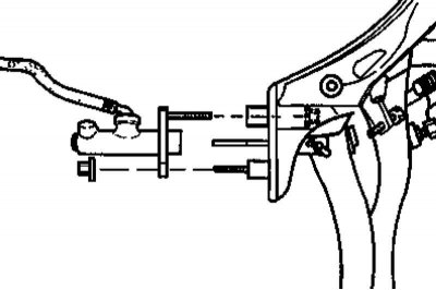 Детали установки главного цилиндра привода выключения сцепления