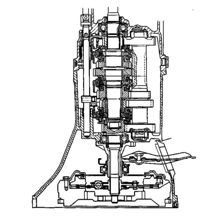Пять шестерен контрприводного вала являются неотъемлемой частью последнего и вращаются вместе с ним, воспринимая крутящий момент от первичного вала. Введенные в постоянное зацепление с контрприводным валом шестерни вторичного вала посажены на игольчатые подшипники, что обеспечивает независимость их вращения до момента выбора соответствующей передачи. Промежуточная шестерня задней передачи также посажена на подшипник и имеет фиксированное положение на своем валу.