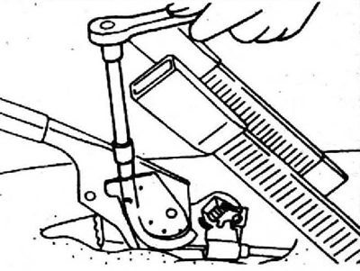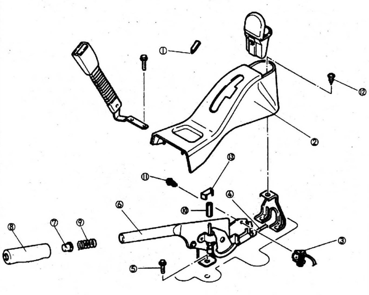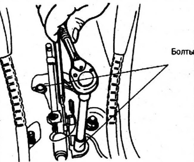 5. Отверните два болта крепления и снимите рычаг стояночного тормоза.