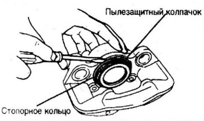 2. Снимите стопорное кольцо пылезащитного кольца.