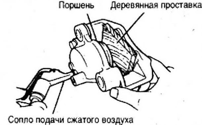 - Поршень суппорта можно извлечь с помощью сжатого воздуха.