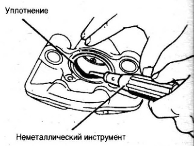 Предупреждение. Не используйте отвертку или другой металлический инструмент, который может нанести повреждение канавки для уплотнение что, может привести к утечке жидкости.