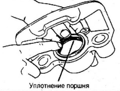 1. Установите уплотнительное кольцо поршня. Нанесите смазку на уплотнительное кольцо поршня и установите его в суппорт.