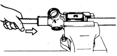17. Медленно передвиньте рейку пять раз вперед и назад на 90% ее хода. Затем установите ее в среднем положении так, чтобы обе тяги имели одинаковый вылет.