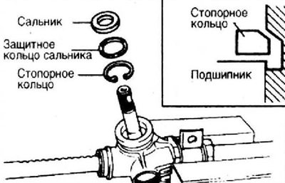 3. Смажьте контактные кромки сальников, упор рейки и саму рейку.