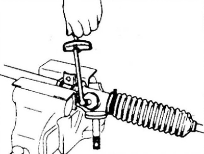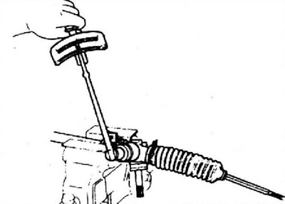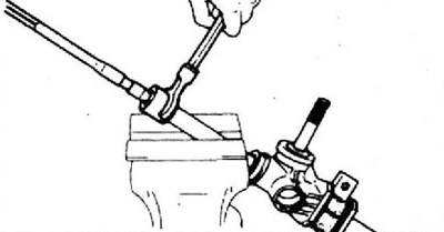 11. Установите рулевые тяги. Зажмите рейку в тисках, снабженных мягкими накладками на губках, и затяните шаровые шарниры, с усилием 108-128 Н·м (11-13 кгс·м), при помощи гаечного ключа с удлинителем.