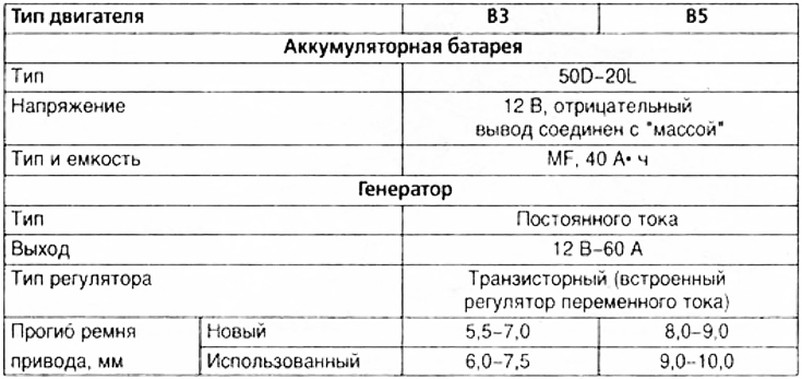 Киа Авелла (1994-2000): Технические характеристики системы зарядки — данные для обслуживания