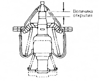 Примечание. Полное открытие означает поднятие клапана термостата на величину 8,5 мм.