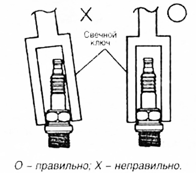 Предупреждение. Убедитесь в том, что ключ плотно надет на свечу.