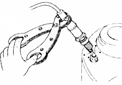 3. Поднимите и держите свечу плоскогубцами с изолированными ручками на расстоянии 5-10 мм от "массы".