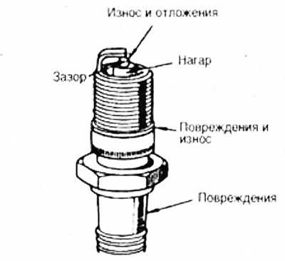 5. Убедитесь в отсутствии следующих неисправностей. Если обнаружите хотя бы одну из них, замените свечу.
