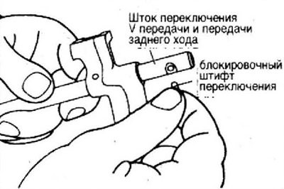 2. Снимите со штока переключения V передачи и передачи заднего хода блокировочный штифт.