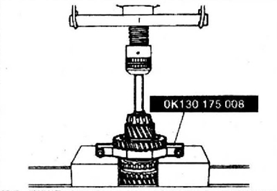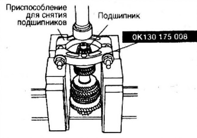 3. При помощи съемника подшипников или аналогичного приспособления снимите подшипник со вторичного вала со стороны синхронизатора V передачи.