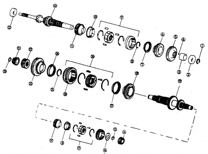 11. Снимите блокировочное кольцо и шестерню II передачи.