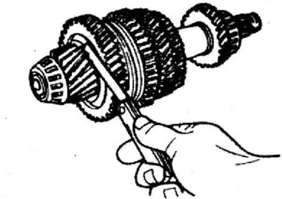 1. Измерьте осевой зазор между шестернями II и III передачи.