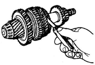 1. Измерьте осевой зазор между шестерней I передачи и ведущей шестерней дифференциала.