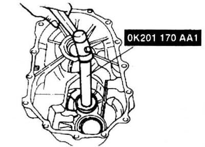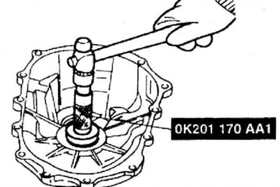 5. При помощи приспособления установите наружное кольцо подшипника той части дифференциала, расположенной в картере сцепления.