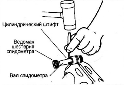 13. Установите на втулку вал и шестерню спидометра в сборе.