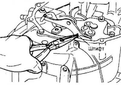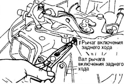 2. При помощи плоскогубцев с длинными губками удалите штифт с рычага переключения заднего хода.