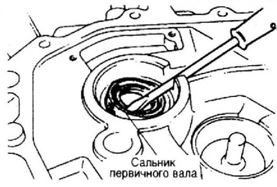 10. При помощи отвертки снимите сальник тяги управления переключением передач.