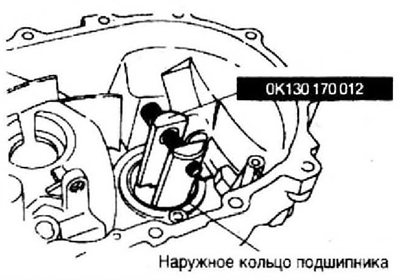17. При помощи отвертки снимите наружное кольцо подшипника вторичного вала из картера коробки передач.