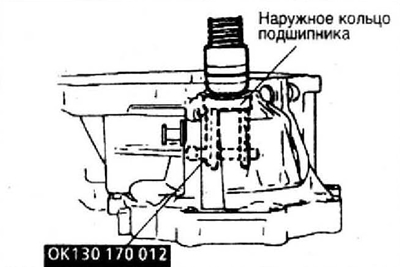 Примечание. В случае необходимости при помощи отвертки, снимите наружное кольцо подшипника вторичного вала.