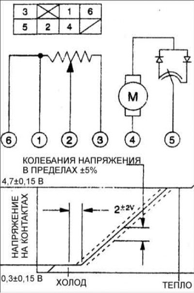Потенциометр – это резистор, установленный на печатной плате привода. В соответствии с выходной скоростью он определяет положение створки смешивания как отношение напряжения на подвижном контакте Е1 к опорному напряжению Е и посылает свой сигнал на блок автоматического управления в качестве сигнала обратной связи.