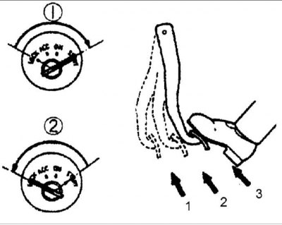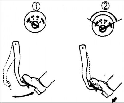 1. При выключенном двигателе несколько раз нажмите на педаль тормоза.