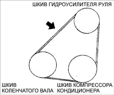 Прогиб ремня привода насоса усилителя рулевого управления: