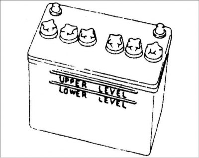 1. Проверьте уровень электролита, который должен находиться между метками "UPPER LEVEL" и "LOWER LEVEL", расположенными на корпусе аккумуляторной батареи.
