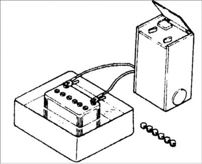 1. Снимите аккумуляторную батарею с автомобиля и выверните пробки из банок батареи.