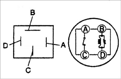1. Омметром проверьте сопротивление между контактами реле. Между контактами А и С проводимость должна отсутствовать, а между контактами B и D должна быть проводимость.