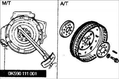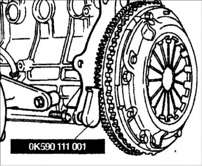 1. Установите специальные инструменты для центрирования диска сцепления и блокирования маховика от проворачивания.