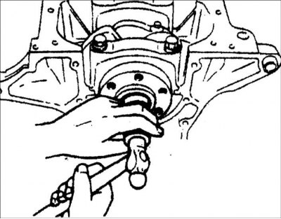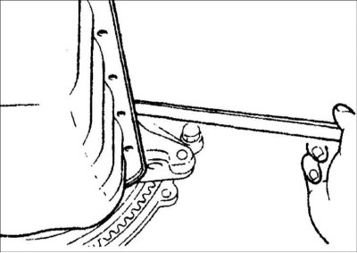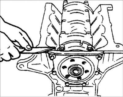 Внимание! Не вставляйте отвертку между блоком цилиндров и масляным поддоном, так как это может повредить сопрягаемые поверхности.