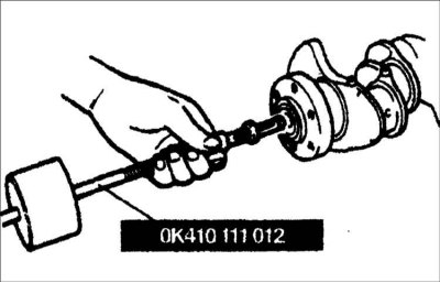 24. Специальным приспособлением ОК410 111 012 снимите с торца коленчатого вала игольчатый подшипник.